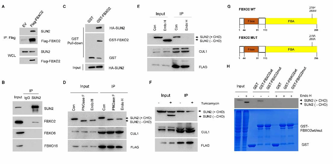 图3 FBXO2靶向降解SUN2蛋白高度依赖于SUN2的糖基化修饰