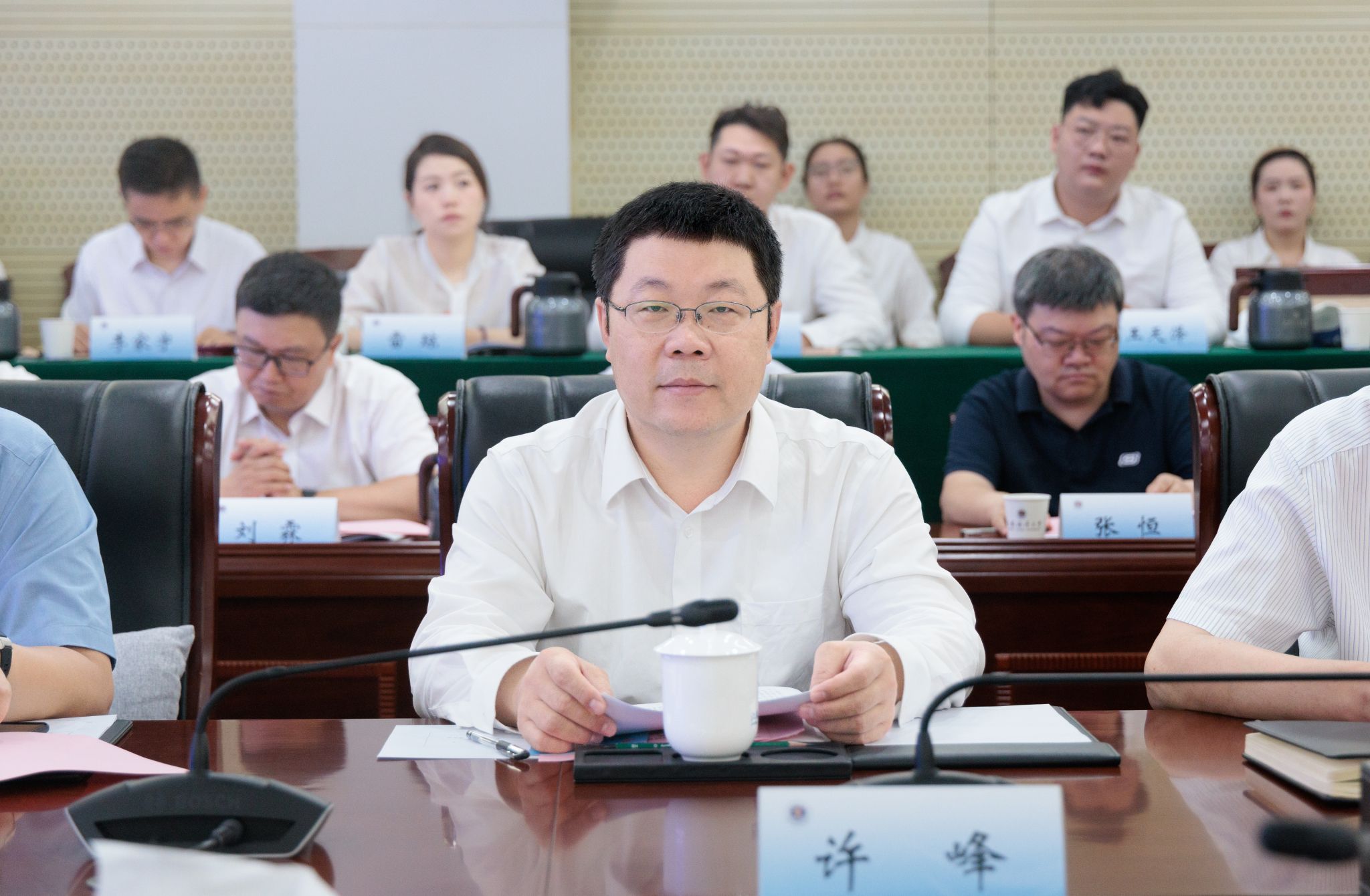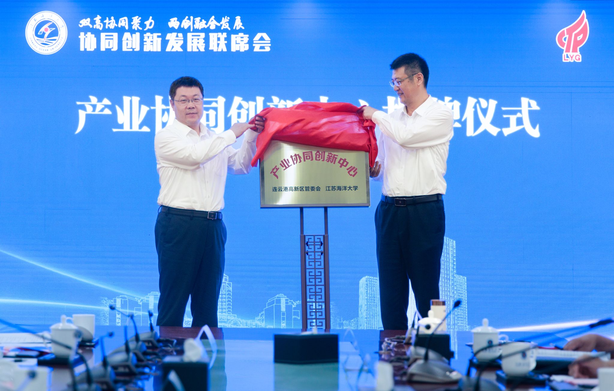 许峰、李锋共同为产业协同创新中心揭牌。中心将为校地双方在科技创新、成果转化、产业发展等方面开展深度合作、协同融合搭建坚实平台。