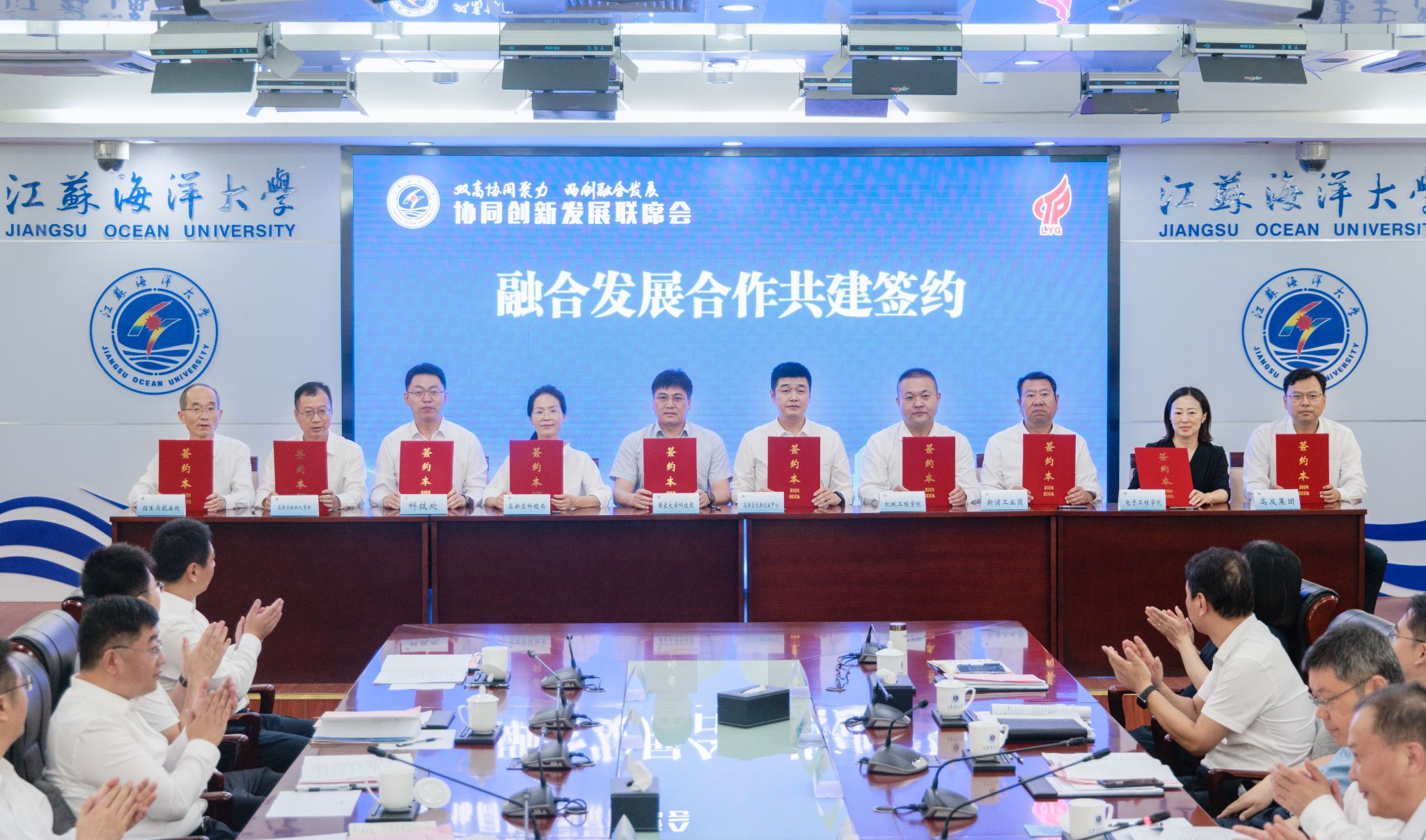双高协同聚力,两创融合发展。7月4日,江苏海洋大学—连云港高新区协同创新发展联席会在会议中心东海厅举行。双方就共建产业协同发展中心,推动双高协同融合发展签署一揽子合作协议。校党委书记许峰,校长汤建,海州区委书记、高新区党工委书记李锋,校党委常委、副校长申欣出席会议。会议由汤建主持。