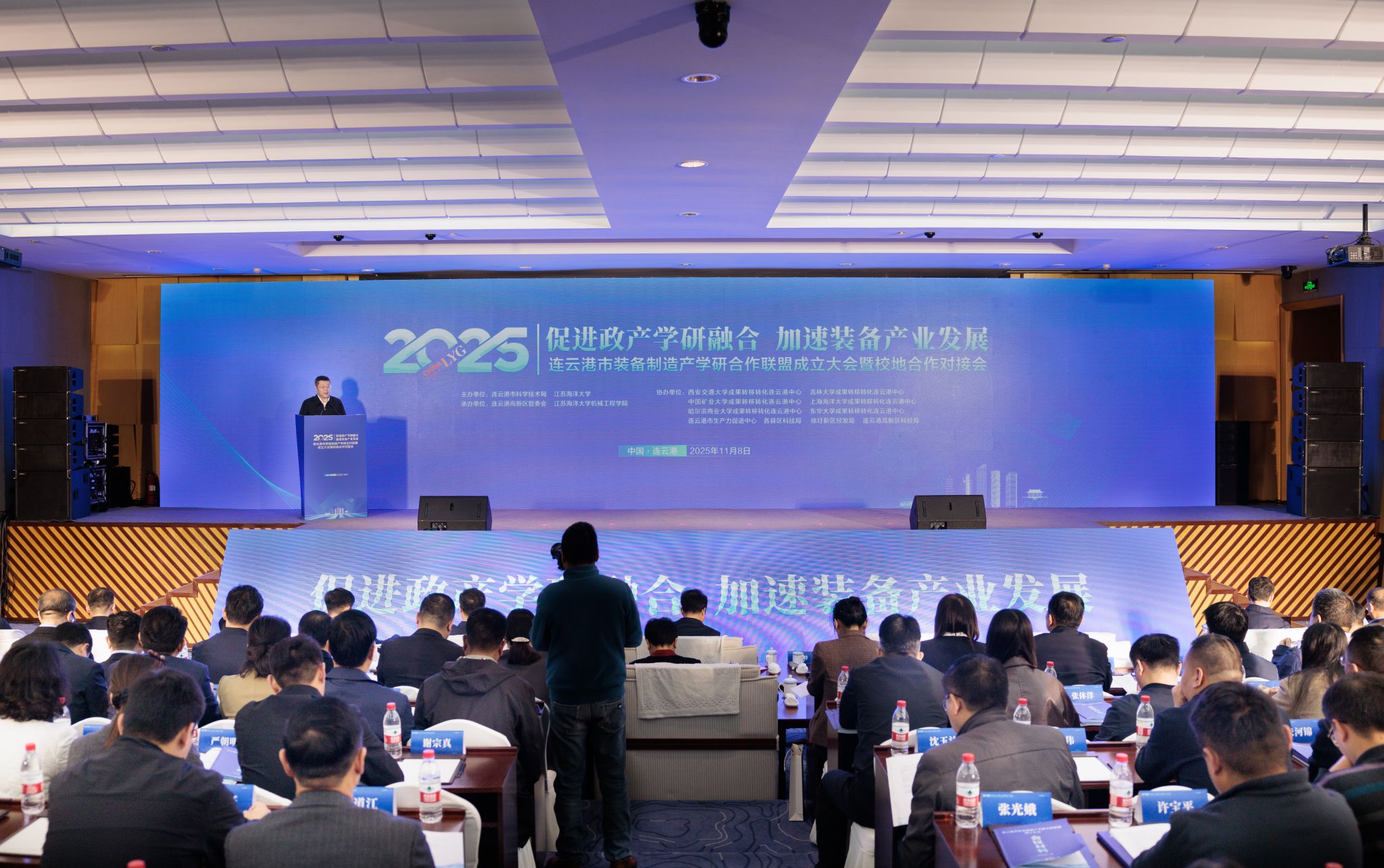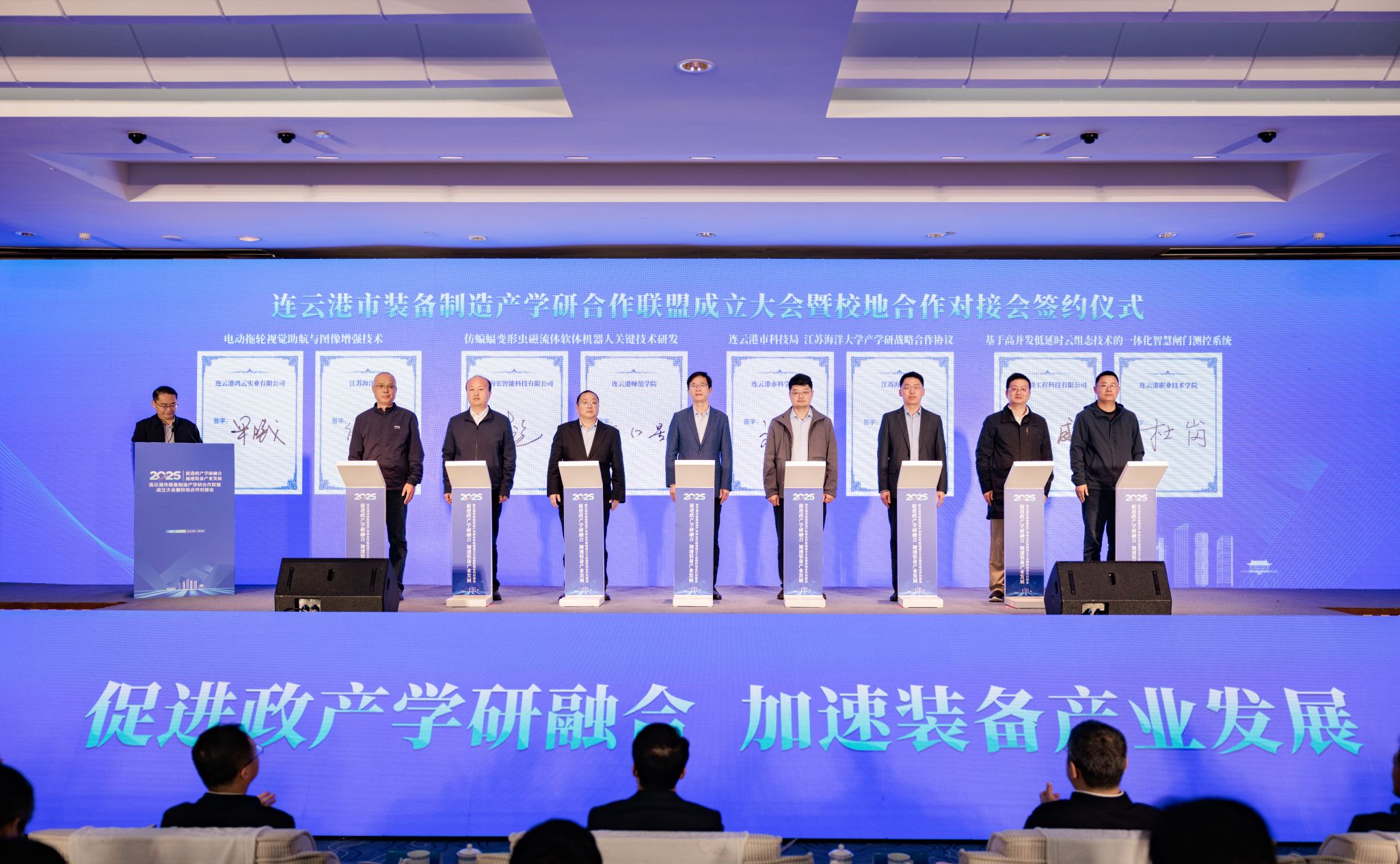 许峰先后出席了连云港市装备制造产学研合作联盟成立大会暨校地合作对接会,2025海州区产业创新发展大会暨第四届红韵海州英才日开幕式,“双高协同聚力 两创融合发展”创新对接会。