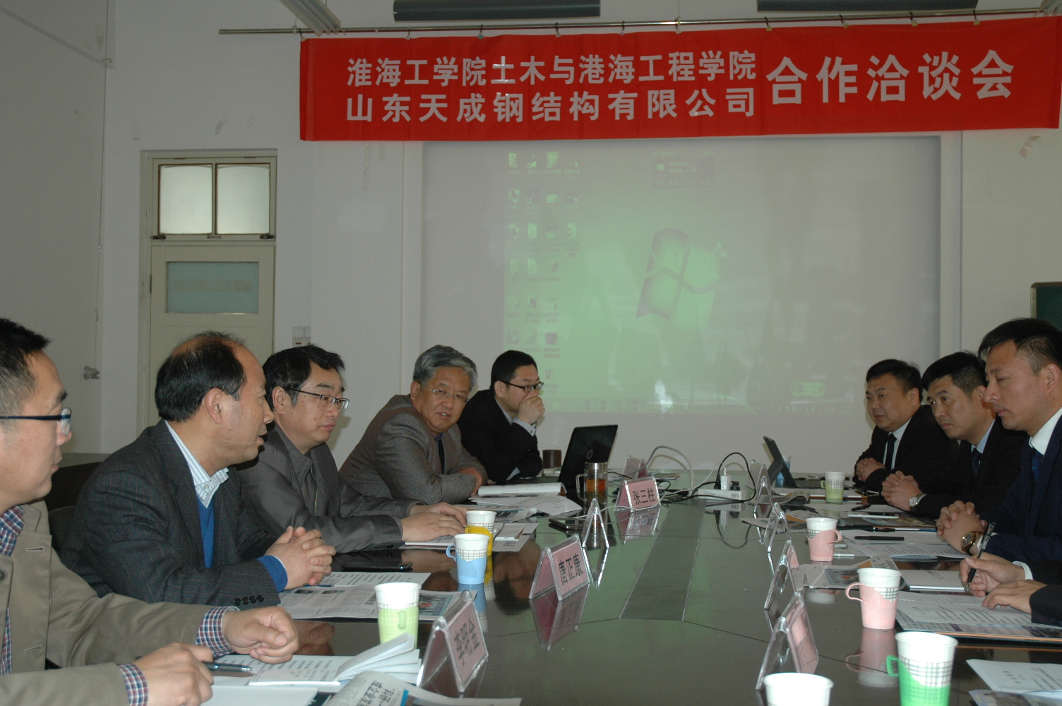 4月1日上午,应我校土木与港海工程学院邀请,山东天成钢结构有限公司李建明总经理一行7人来校合作洽谈,土木与港海工程学院领导吴建新、张三柱、李明金,校科技处副处长唐正康等参加洽谈。该院李明东博士两项专利:《轻质建材的生产装置和生产方法》(发明)、《一种含盐淤泥土烧结陶粒的生产系统》(实用新型),成功转让签约。