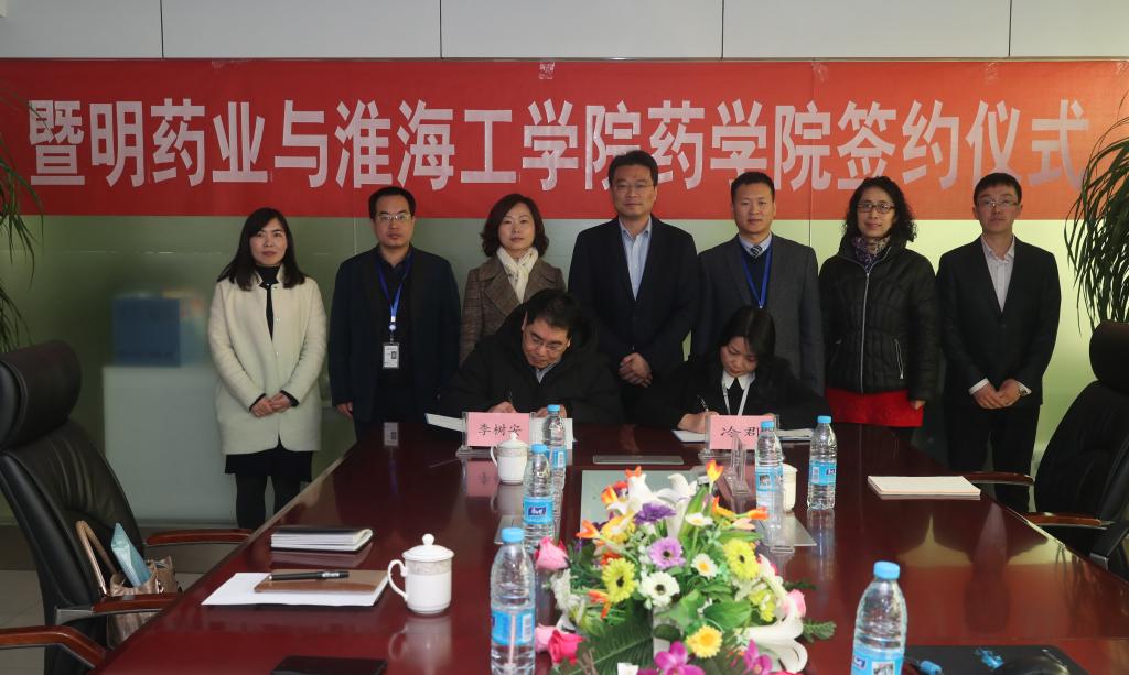 3月22日上午,药学院和江苏暨明医药科技有限公司产学研合作签约仪式在江苏暨明医药科技有限公司举行。开发区党工委委员、管委会副主任王森,药学院党委书记李树安,暨明医药公司总裁助理冷郡出席,开发区科技局、药学院、企业相关人员参加签约仪式。
